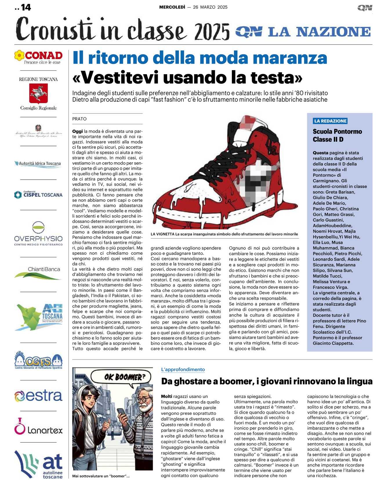 Questa pagina è stata realizzata dagli studenti della classe II D della scuola media «Il Pontormo» di Carmignano. Gli studenti-cronisti in classe sono: Greta Barisan, Giulio De Chiara, Adele De Mario, Paolo Gheri, Christina Gori, Matteo Grassi, Carlo Guastini, Adam Houbeddine, Noemi Hrovat, Majla Hysenbelliu, Yi Wei Hu, Ella Luo, Musa Muhammad, Bianca Pecchioli, Pietro Picchi, Leonardo Sardi, Adele Sicuranza, Marianna Silipo, Silvana Sun, Matilde Tucci, Melissa Ventura e Francesco Virga.