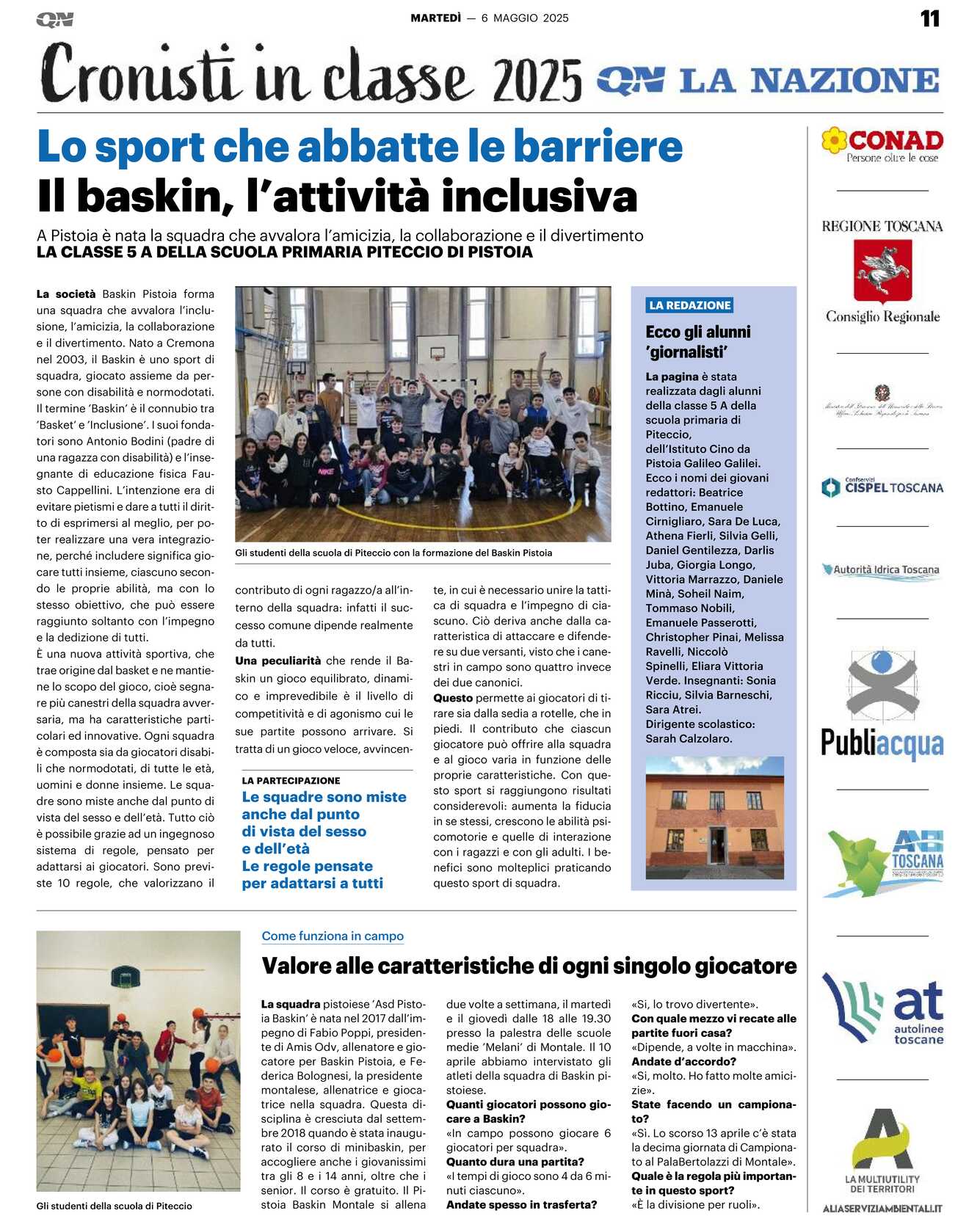 La squadra pistoiese ’Asd Pistoia Baskin’ è nata nel 2017 dall’impegno di Fabio Poppi, presidente di Amis Odv, allenatore e giocatore per Baskin Pistoia, e Federica Bolognesi, la presidente montalese, allenatrice e giocatrice nella squadra. Questa disciplina è cresciuta dal settembre 2018 quando è stata inaugurato il corso di minibaskin, per accogliere anche i giovanissimi tra gli 8 e i 14 anni, oltre che i senior. Il corso è gratuito. Il Pistoia Baskin Montale si allena due volte a settimana, il martedì e il giovedì dalle 18 alle 19.30 presso la palestra delle scuole medie ’Melani’ di Montale. Il 10 aprile abbiamo intervistato gli atleti della squadra di Baskin pistoiese.