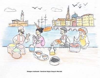 Il cibo, per noi, oltre ad avere un valore gastronomico, ha soprattutto il potere di unire persone di culture diverse. Scambiando piatti e ricette, può aiutare a fare amicizia e può mettere d’accordo con serenità le persone che si riuniscono a tavola. Livorno, è un esempio di città dove le culture si incontrano e si intrecciano. Infatti, nasce per motivi economici e come frutto di un progetto politico ben organizzato con le Leggi Livornine, emanate da Ferdinando I de’ Medici tra il 1591 e il 1593. Chiunque veniva a vivere nella nostra città era libero e poteva esercitare tutte le professioni che voleva. A Livorno si trovavano signori provenienti da molto lontano: banchieri, armatori, ufficiali, avventurieri che facevano feste, ricevimenti e pranzi serviti dagli schiavi dei bagni delle galere.
