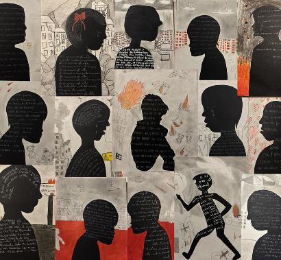 La nostra classe, quest’anno, ha partecipato al concorso nazionale «Infanzia negata: i bambini vittime della guerra, dal 1945 ai nostri giorni»; promosso dall’associazione nazionale vittime civili di guerra (Anvgc). Con la professoressa di Storia abbiamo scritto dei brevi racconti, in cui abbiamo immaginato di vivere in un paese in guerra, raccontando le nostre emozioni e sensazioni. Poi con la professoressa di Arte abbiamo ritagliato delle sagome nere di bambine e bambini, nelle quali abbiamo scritto la nostra storia, disegnando come sfondo, un’immagine di guerra. È stato un lavoro molto forte e commovente, che ci ha segnato nel profondo e ci ha fatto vedere la Storia che studiamo a scuola in maniera diversa e più umana.