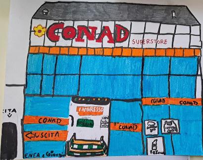 Insieme alle nostre insegnanti siamo andati a piedi al supermercato Conad vicino alla nostra scuola.