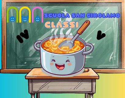 Driiin!!! È suonata la campanella!!! È arrivato il momento di andare a mensa, cosa mangeremo oggi? Prendiamo i giacchetti, ci mettiamo in fila, scendiamo le scale.