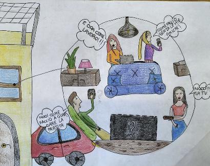 Ok, però è tutto così strano. Per strada c’è un viavai di gente, persone che corrono di qua e di là, come impazzite. A scuola la lezione è diversa dal solito: la Lim non funziona, i computer dei prof nemmeno. Il vero problema però arriva dopo scuola. Devo fare una ricerca con una mia amica, ma non ho stabilito l’orario. Cosa fare? Mi faccio coraggio, esco di casa e vado a casa della mia compagna. Esito un po’ alla vista della porta, non sono abituato a bussare alla porta di casa dei miei amici, di solito li chiamo con il cellulare. Sono inquieto: e se è un momento sbagliato? Comunque busso e aspetto alcuni infiniti secondi, rigido come una statua. Per fortuna la mia compagna mi apre. Ora c’è il secondo problema: la ricerca. Come facciamo? No Internet è uguale a nessuna ricerca. Ad un certo punto lei si ricorda di avere una grande enciclopedia. La consultiamo e ci vuole molto tempo per trovare le informazioni in quel mare di parole ma ci riusciamo e soddisfatti scriviamo tutto a mano. Torno a casa tardi, ceno e parlo con i miei genitori.